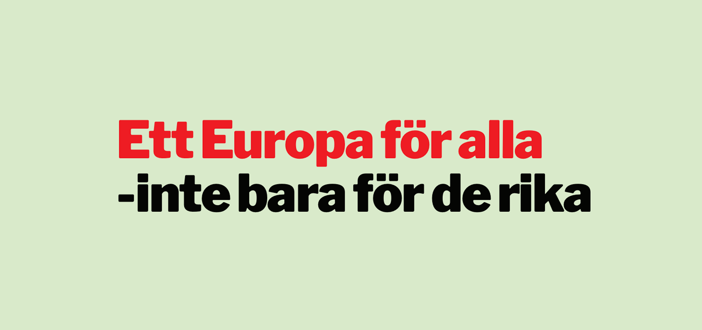 Europa har aldrig varit så rikt och samtidigt så ojämlikt. Ojämlikheten mellan de som har och de som inte har breder ut sig såväl inom länder som mellan länder i Europa. EU:s svar på finanskrisen var ännu mer av den högerpolitik som hade skapat krisen. Bankerna räddades medan kostnaderna fick bäras av oss andra. Den växande ojämlikheten har skapat en grogrund för de nationalister och rasister som nu vill inskränka demokratin, med högerns hjälp tar de makten i Europa genom en retorik och en politik som sparkar nedåt.