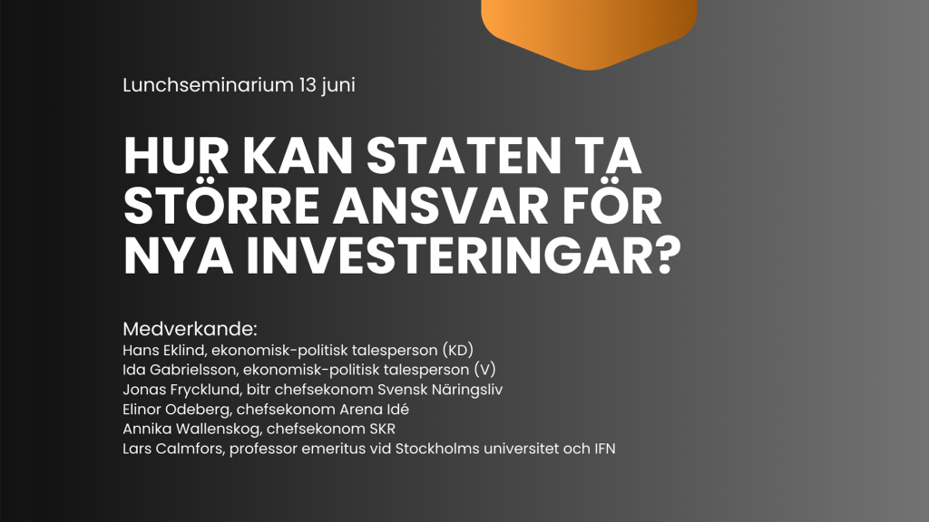 Det finanspolitiska ramverket är nu föremål för en översyn, inom ramen för en parlamentarisk kommitté. I kommittén diskuteras exempelvis en sänkning av överskottsmålet till förmån för att möjliggöra större investeringar i infrastruktur, försvaret och på klimatområdet. Välkomna till ett samtal om vilka satsningar som staten bör vara med och finansiera i framtiden och hur det finanspolitiska ramverket bör anpassas för att möjliggöra detta.