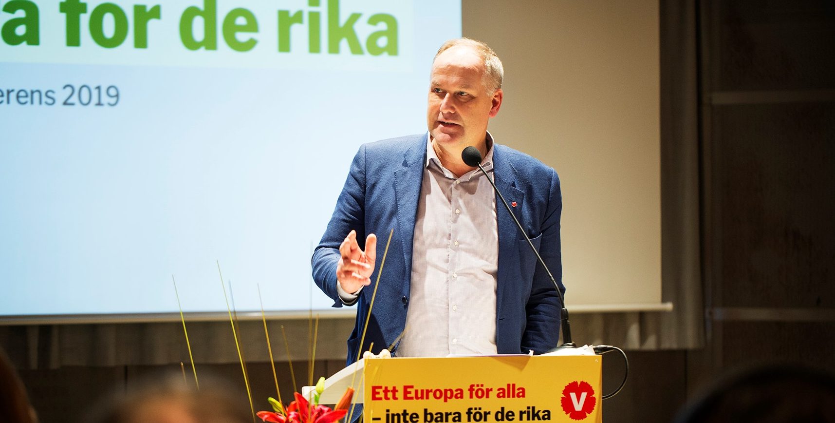 Jonas Sjöstedt pratade i sitt tal om sina egna erfarenheter av lobbyisternas makt i Bryssel, en fråga som också Vänsterpartiet kommer att lyfta i sin EU-valkampanj.