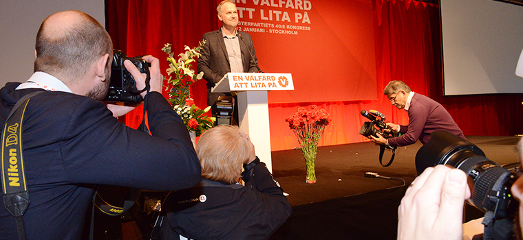 ”Vi har lovat väljarna att få bort vinstintresset i välfärden. Det löftet ska vi göra allt för att förverkliga”, sade Jonas Sjöstedt och rev ner applåder.