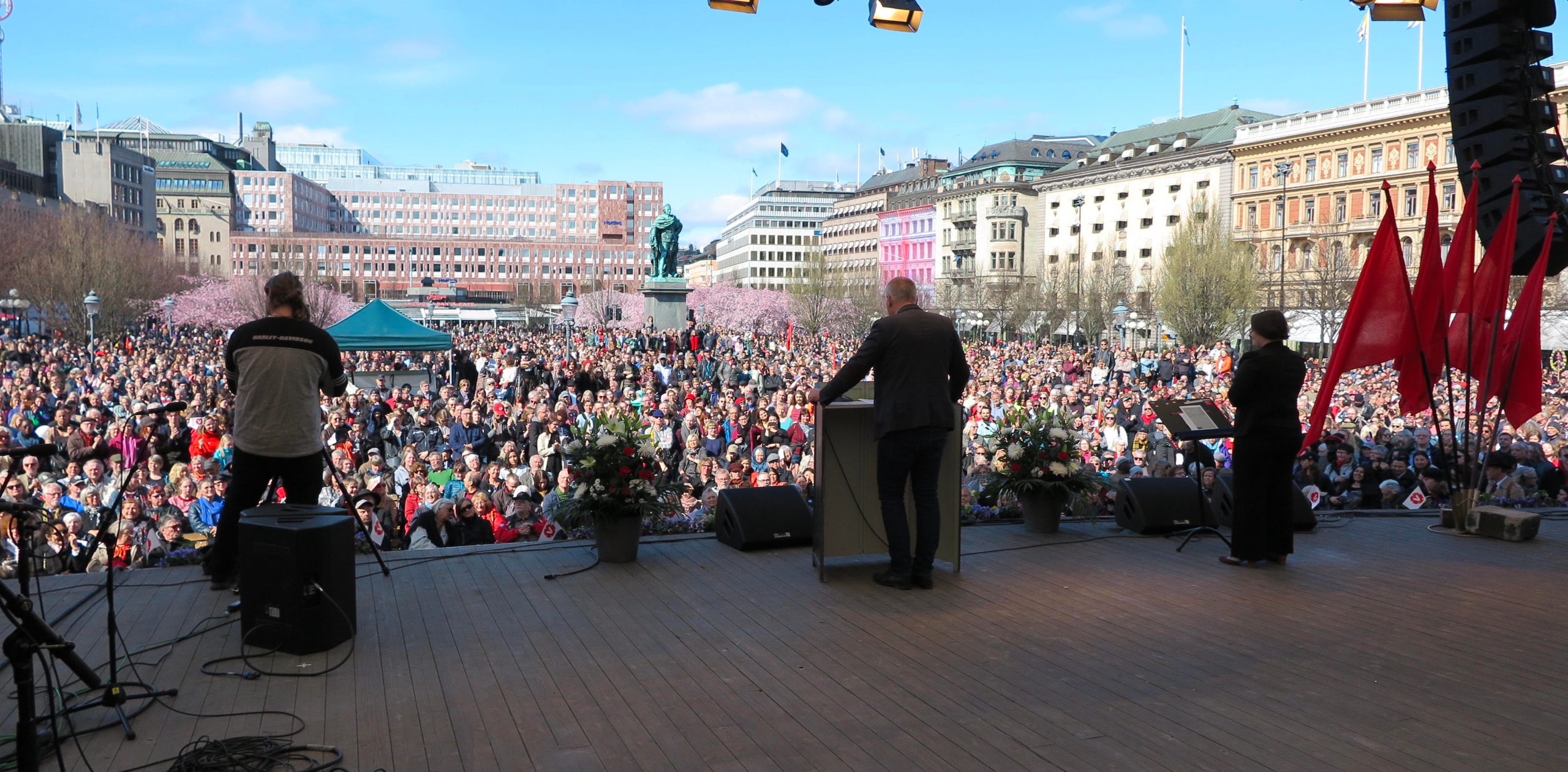 Så avslutade Jonas Sjöstedt sitt 1 maj-tal i en solig och fullsatt Kungsträdgården i Stockholm.