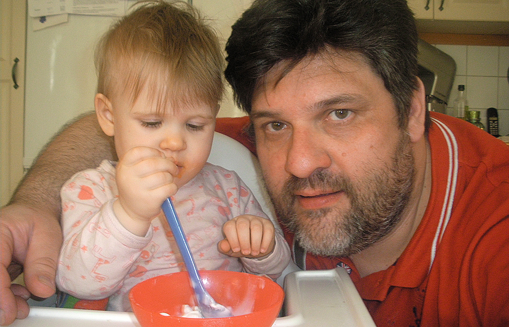 Bildtext: Barnen är ju viktiga i valet, säger Per. Här med dottern Malin, 1 år och 3 månader.