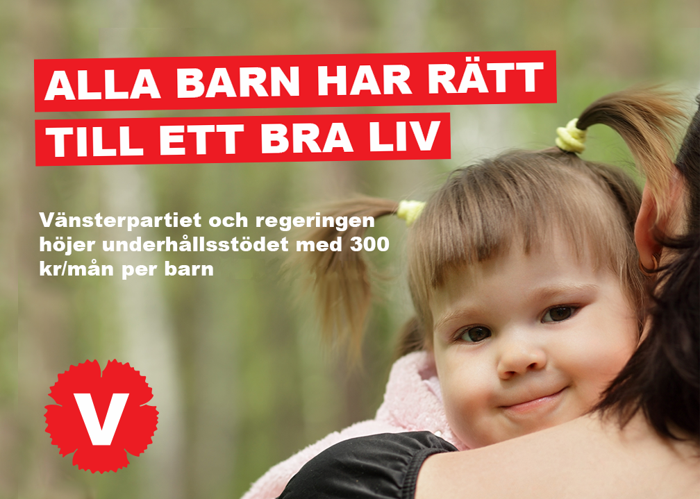 Vänsterpartiet och regeringen höjer underhållsstödet med 300 kronor i månaden per barn. Reformen finns med i den kommande budgeten och börjar gälla 2015.