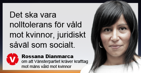 – Det ska vara nolltolerans mot mäns våld mot kvinnor. Det handlar om en mänsklig rättighet. Vänsterpartiet kommer att arbeta hårt för att rikspolitiken implementerar en nolltolerans för våld mot kvinnor, juridiskt såväl som socialt, säger Rossana Dinamarca, feministisk talesperson för Vänsterpartiet.