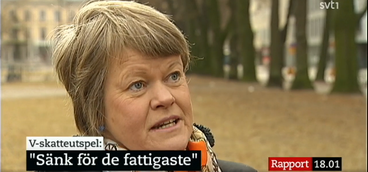 – Det kan ju inte vara meningen i ett välfärdsland som Sverige, att den som är sjuk ska betala mest i skatt, säger Ulla Andersson (V) ekonomiskpolitisk talesperson.