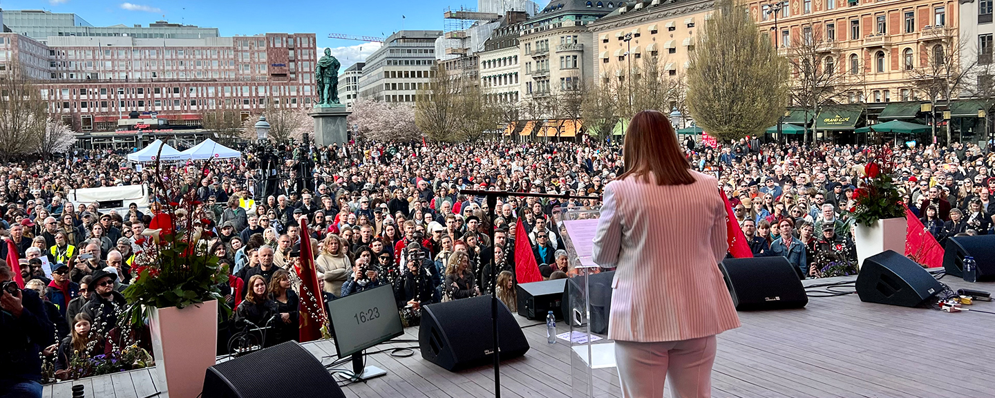 – Pandemin har visat vilka enorma brister det finns i sjukvården, äldreomsorgen och den övriga välfärden. Ändå vill regeringen prioritera att betala av på statsskulden de kommande åren framför att satsa det som behövs. Till exempel borde vi ju anställa väldigt många fler i välfärden. Det skulle göra Sverige starkare och skapa jobb. Men vi ska inte nöja oss med att öka den offentliga sysselsättningen, vi måste se till att skapa jobb i det privata också. För det behövs massiva offentliga investeringar och ordentlig industripolitik. Det handlar om sådant som att bygga bort bostadsbristen, lägga ny räls och få förnybar energi på plats. Klimatomställningen skapar enormt mycket jobb, men det kräver rätt politik.