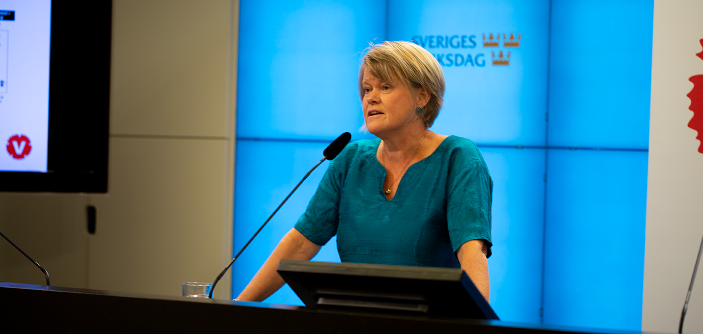 – Trots krisen gör regeringen väldigt lite för att lösa äldreomsorgens problem, så nu måste vi agera. Genom att omvandla timanställningar till fasta jobb för de som arbetar i äldreomsorgen så skyddar vi de äldre. Vårt mål på sikt med det här är att halvera andelen timanställningar, säger Nooshi Dadgostar, partiledare Vänsterpartiet.